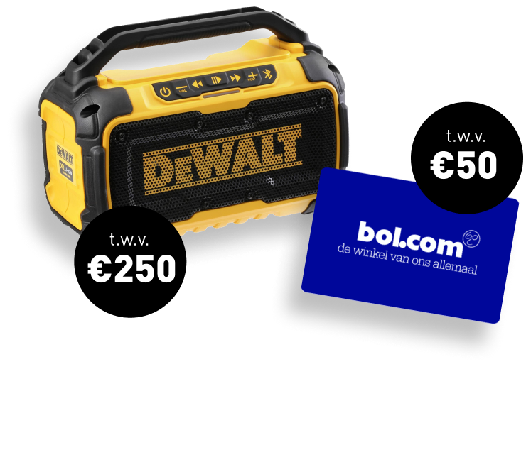 Hoofdprijs: bluetooth bouwradio incl. accu en oplader t.w.v. € 250,-